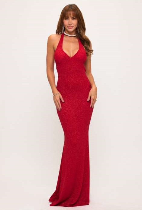 Sparkling and elegant mermaid dress featuring a flattering V-neckline with a supportive elastic band. The back showcases a chic mid-back cutout with a secure clasp closure, adding a touch of sophistication and allure.